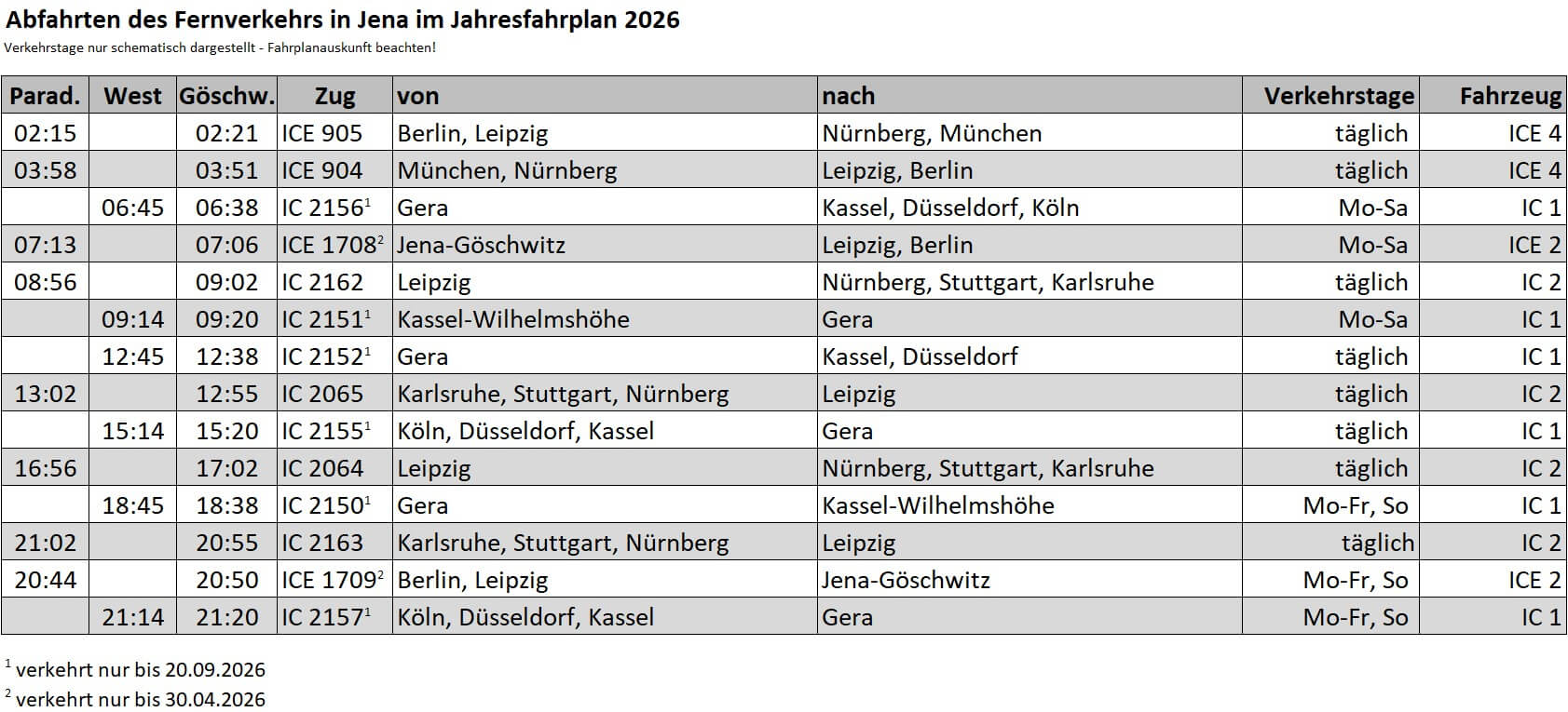 Der neue Fahrplan ist bereits auf bahn.de abrufbar. Die Jenaer Fernzüge in der Übersicht: